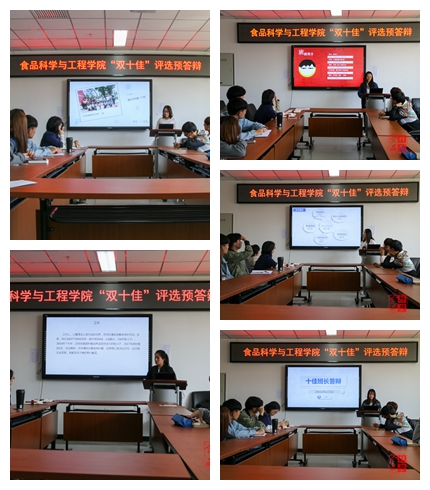 在食品楼218会议室举行本学年十佳班长与十佳团支书预答辩。