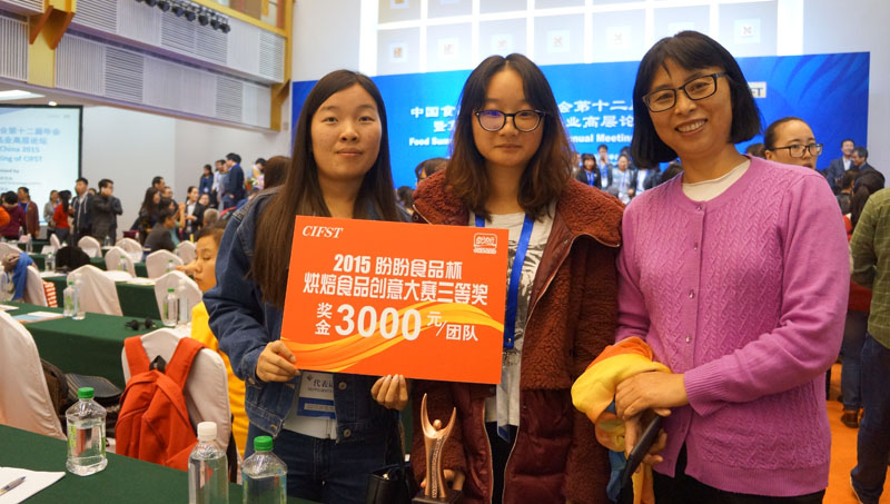 2015年10月21日,2015“盼盼食品”杯烘焙食品创意大赛颁奖仪式在大连举办,时值中国食品科学技术学会第十二届年会暨第八届中美食品业高层论坛召开之际。学生代表杨娣、盛晔琦,指导教师徐艺青、Coral博彩