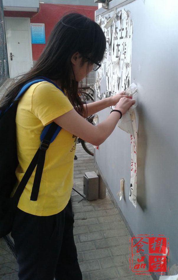 活动过程中,大家认真对待,即使有的小广告粘性很大不好清理。大家也不放弃,坚持撕下每一张小广告,努力把负责区域的小广告清理的干干净净。一双双辛勤的手,换来了北农校园更加整洁温馨的生活环境。