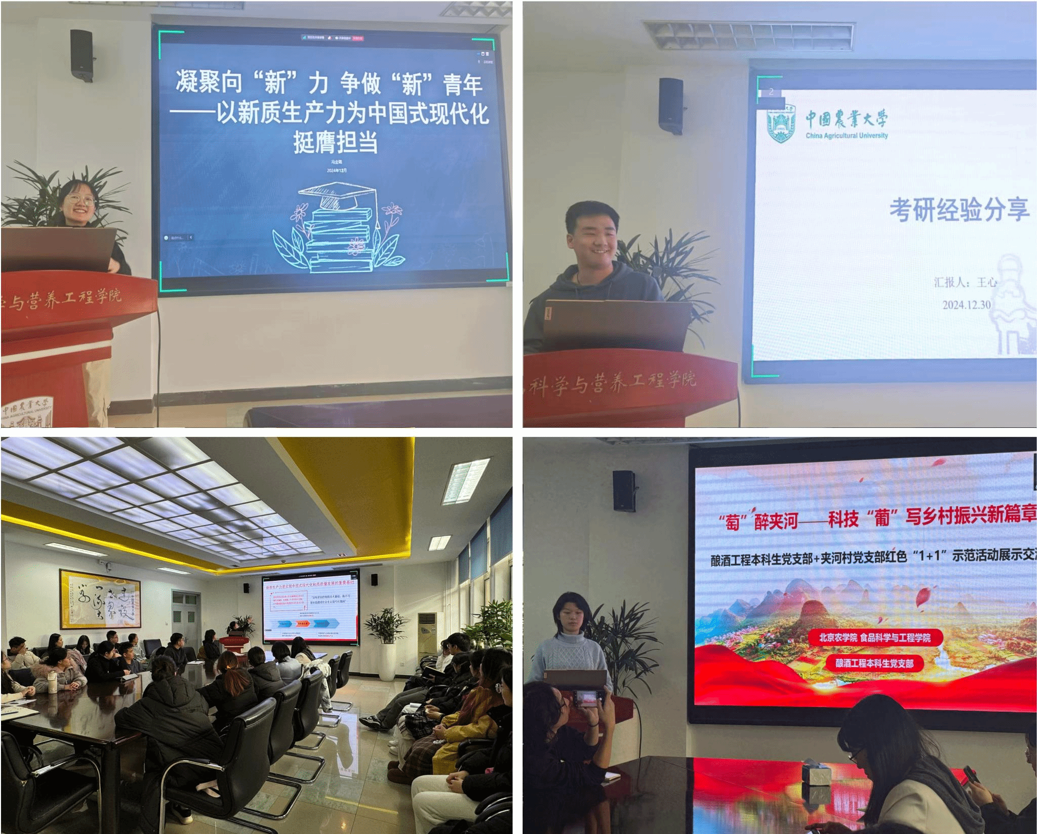 座谈会上,中国农业大学党委理论学习宣讲团讲师冯金璐作主题宣讲《凝聚向“新”力争做“新”青年——以新质生产力为中国式现代化挺膺担当》,围绕新质生产力与农业现代化发展进行深入阐述。他指出,农业院校培养的既是“新农人”也是“兴农人”,要不断扎根求索,与有志者同行,与时代同行。