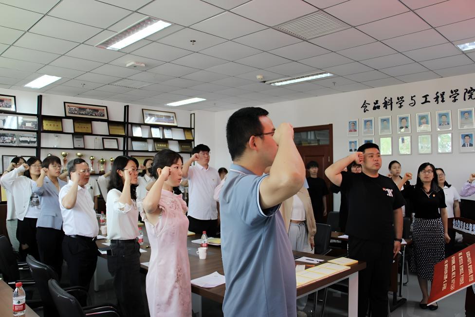 全体师生党员重温入党誓词。Coral博彩 党委向全体毕业生党员赠送《论共产党员的修养》一书,2023级食品科学与工程专业学生党员王鹤霖将亲笔书写的廉洁书签赠予全体毕业生党员,为书香再添一缕清风。