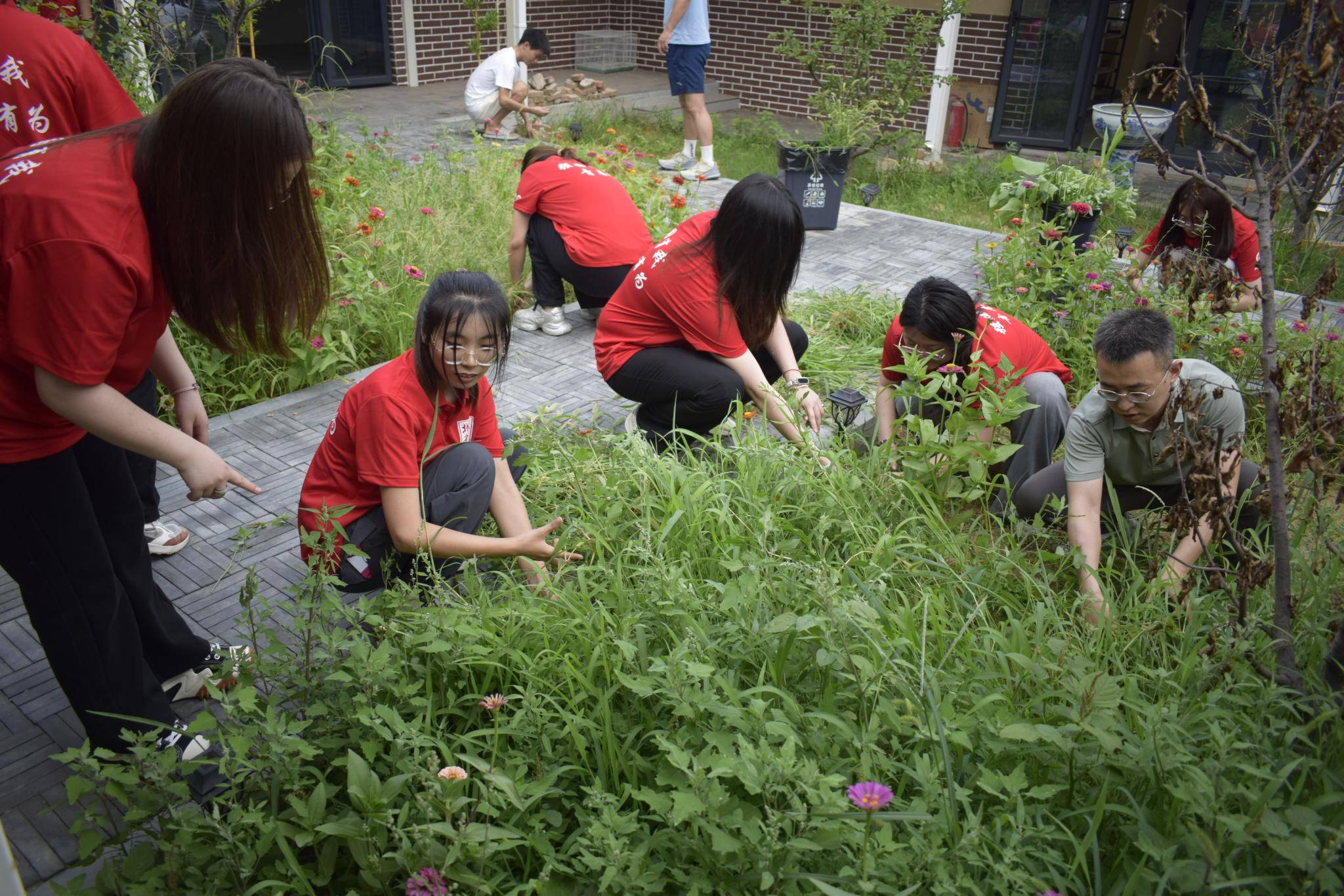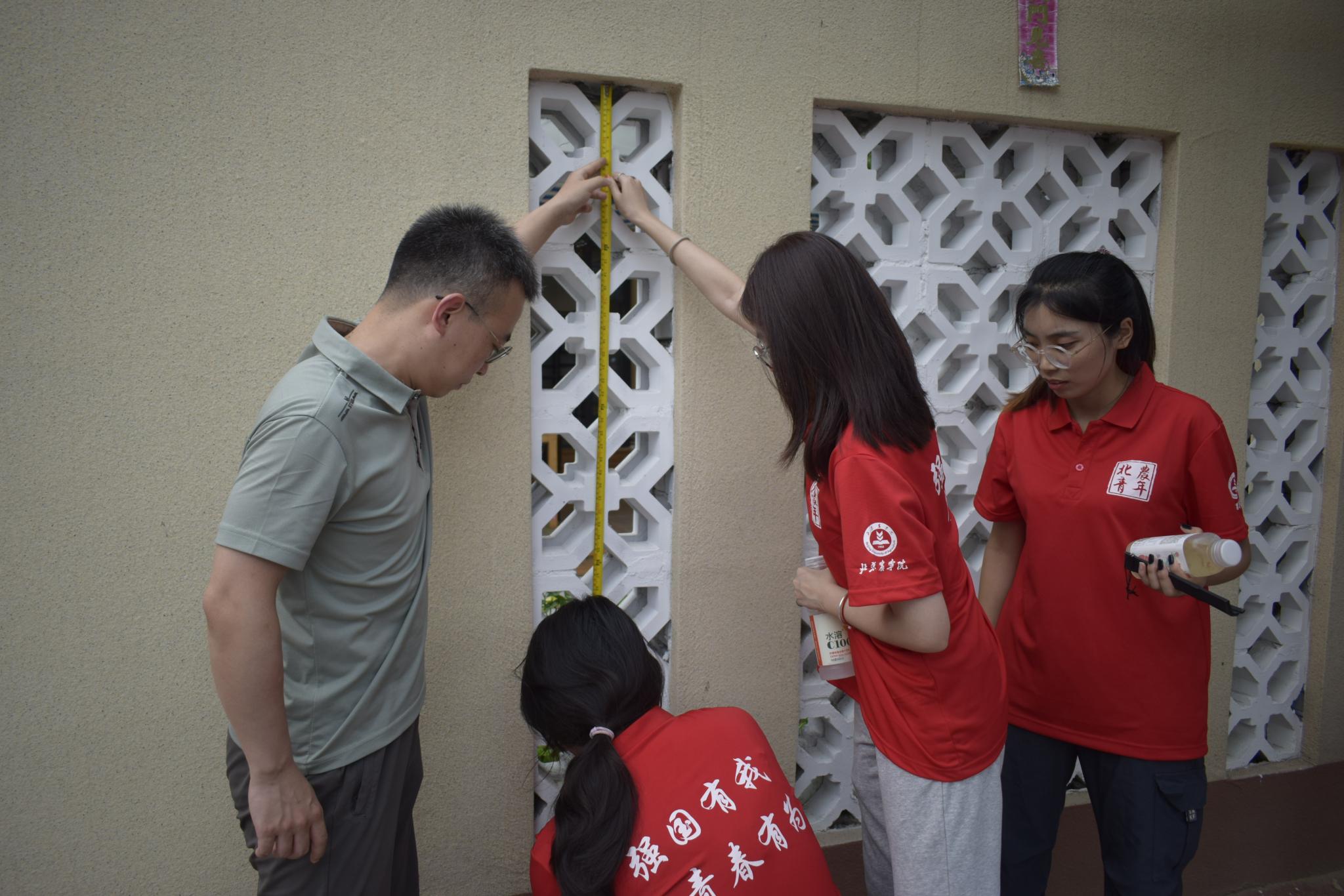 在魏晓峰老师的示范指导下,团队师生分为四个小组分工协作,分别开展设计规划、场地清理、材料准备等工作。随后,师生们清理杂草、丈量尺寸、布置景观,使基地的整体风貌焕然一新。工作间隙,大家还品鉴了当地的小麦啤酒,并给出了专业建议。