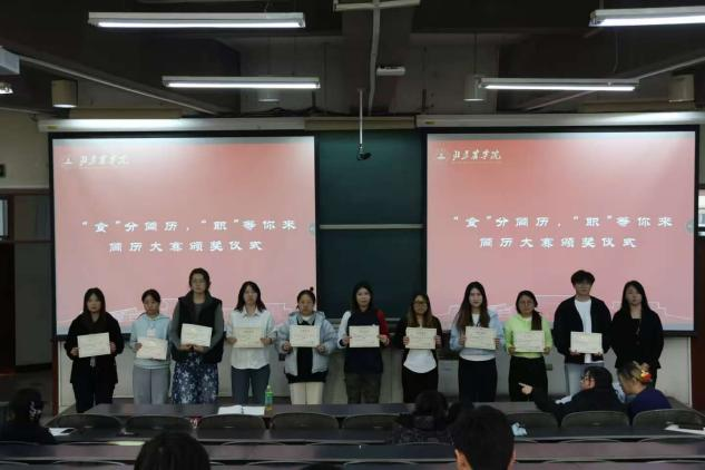 举办“‘食’分简历 ‘职’等你来”简历大赛,全体2026届毕业生参加大赛。