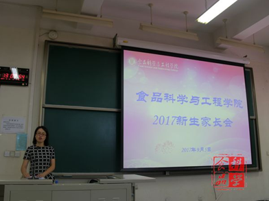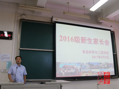 党总支书记党登峰,院长张红星,副院长丁轲、马挺军、王雪,食品质量与安全系主任高秀芝、食品科学与工程系副主任王芳、包装工程党支部书记孙运金、2017级各班班主任、辅导员张明婧和罗蕊老师出席会议。家长会由王雪老师主持。会场座无虚席,气氛融洽。