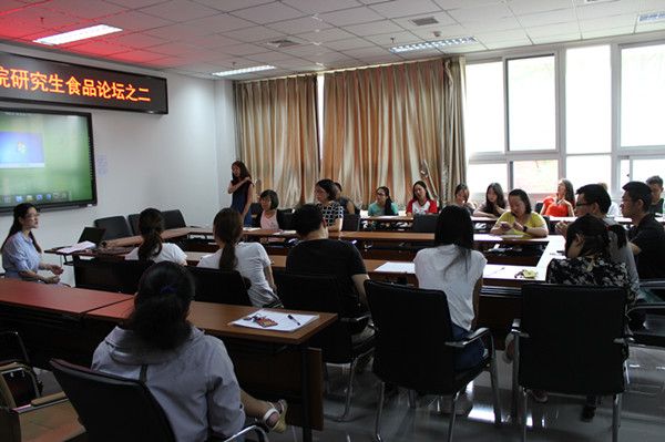 召开研究生食品论坛第二场报告会。邀请了2017届优秀毕业生张家宁为低年级研究生做经验交流。党总支副书记、副院长王雪,团委书记刘海燕老师到会。