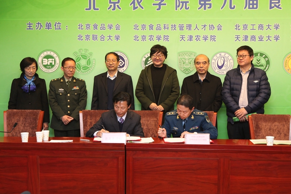 院长仝其根与中国人民解放军食品检测试验中心主任耿战辉、中国人民解放军95883部队训练处陈超建处长分别签订了人才培养合作协议。