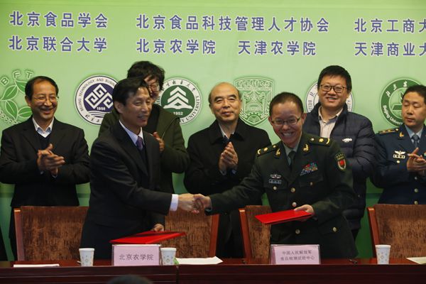 中国人民解放军食品检测试验中心主任耿战辉希望军民共建能把高校人才、技术资源密集的优势与军队仪器、设备、条件结合起来,使学生有一个比较好的实习和试验的平台,也使部队的仪器设备发挥重要作用,为双方共同发展而奠定良好的基础。