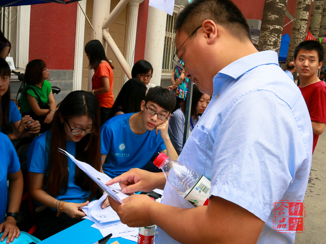 早上7点,我院的新生班助准时聚齐报到处,开始了迎新工作。班助们认真地向每位新生介绍报到流程,宿舍情况等,并协助他们完成报到事宜。