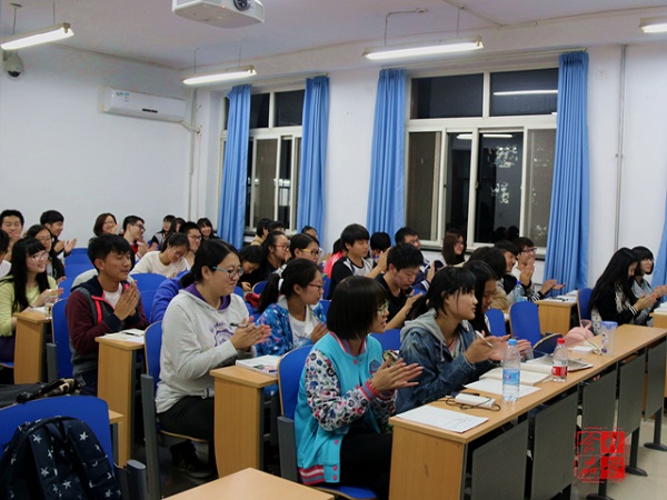 安全班则迎来了两位学姐和一位学长。李甜学姐主要从社团和自学两方面讲起。她热爱运动,参加了定向社和国旗班。国旗班的训练让她养成了早起的好习惯。她最后总结道:“习惯在你的生活安排中占很重要的地位。在学习方面,我们要养成预习,自学的好习惯,这会使我们受益匪浅。”而刘尧学长则与众不同,他一上场就在黑板上板书了“化学的父亲们”,学长用生动幽默的话语讲述了著名化学家的重大成就,这使现场的气氛逐渐高涨了起来,他认为,现在的大学生正需要这种科学的精神以及追求真理的信念。接下来,高青明确为大家指出了大学与高中的种种不同:在大学里要求我们学会主动学习,不能指望老师像高中那样督促你。