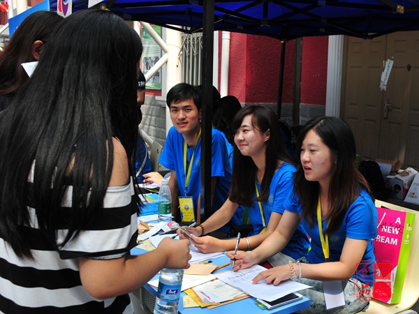 很多新生在大学接触到的第一个人就是他们,他们帮着新生办手续,领着新生找宿舍,给新生讲着这陌生的环境陌生的生活,是他们带新生走进了大学的校门。他们,是志愿者,是最光荣的人。