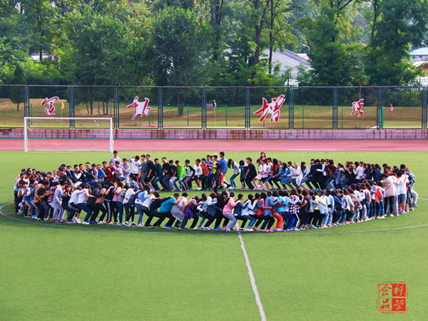 全体2015级新生在操场举行了素质拓展活动,旨在放松心情、锻炼身体的同时拉近同学们之间的距离。