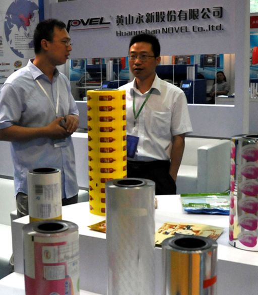 孙老师主要对包装材料及塑料软包装行业的发展趋势做了粗略的调研。目前,包装行业处于发展瓶颈,即已有的包装设备和包装产品由于设备陈旧、附加值较低,造成产品销售困难,已不能满足市场对产品的高标准要求,也不适应当前绿色环保的发展要求。虽然国内的包装行业水平低于外国发达国家的包装水平,但国内厂家也在积极发展新产品。例如,黄山永新股份有限公司目前在食品、药品包装紧跟世界先进包装技术的发展步伐,建立超大、超洁净工艺车间,并建有系统的包装测试平台。黄山永新股份有限公司的副总经理在展会上告诉我们,公司从德国引进一台先进的镀膜设备,制备的高阻隔镀膜产品将于近期投入市场。