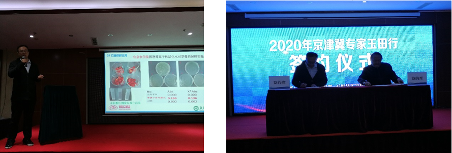 孙运金副教授应邀参加了2020年“京津冀专家玉田行”活动。在唐山市人才交流中心和玉田县组织部的精心组织和筹划,项目路演活动于2020年10月16日在玉田晶玉宾馆顺利进行,孙运金副教授做了题目为“大气等离子体技术在储藏保鲜中的应用”报告,就等离子技术来源和发展做了详细介绍,针对等离子体技术在农业中的杀菌和保鲜进行了专题报道。现场引发参与企业的热烈提问,对是否能够落地玉田进行了探讨。特别是唐山市盛川农产品股份有限公司,与孙运金副教授对等离子体技术的具体实施模式以及应用实践情况进行了深入探讨,初步打算以农产品保鲜、速冻、深加工为名进行了项目立项,并在现场进行洽谈和签约,为项目的后期合作做好铺垫。