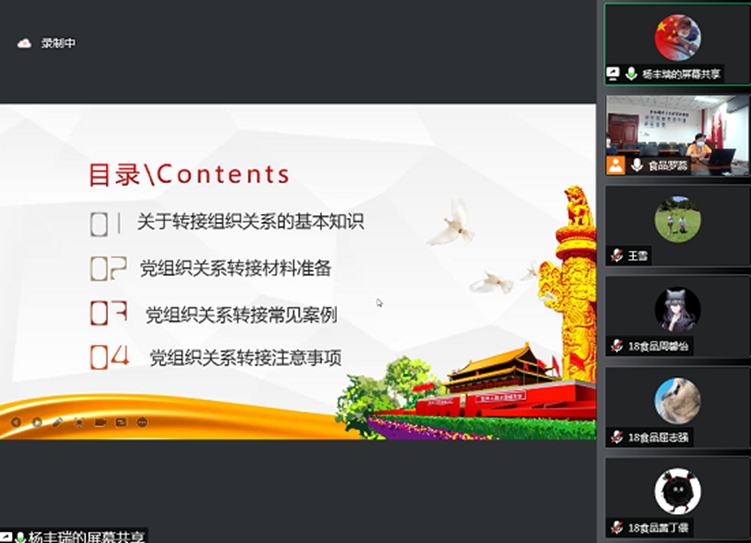 杨丰瑞为毕业生党员详细讲解了党组织关系转接实务。通过翔实的案例,让毕业生党员深刻理解了党组织关系转接的重要意义。他还要求所有毕业生党员,在毕业季更要凸显党员的先进性,在疫情防控、毕业离校等工作中发挥模范带头作用。