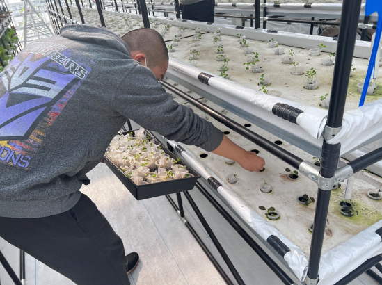 组织全体2022级本科新生150余人次分三批在学校温室大棚进行了菜苗移植活动。本次活动由新生辅导员任墨诺带队,教育基地负责人李崇芳负责指导。同学们5-6人一组,学习水培油菜如何上苗。李老师给同学们亲自示范如何上苗,即从营养钵中取出一个长势良好的苗,再拿无纺布包住苗的根部,放入定植杯中,摆入空篮里,最后码入水培基质指定的位置,完成上苗。