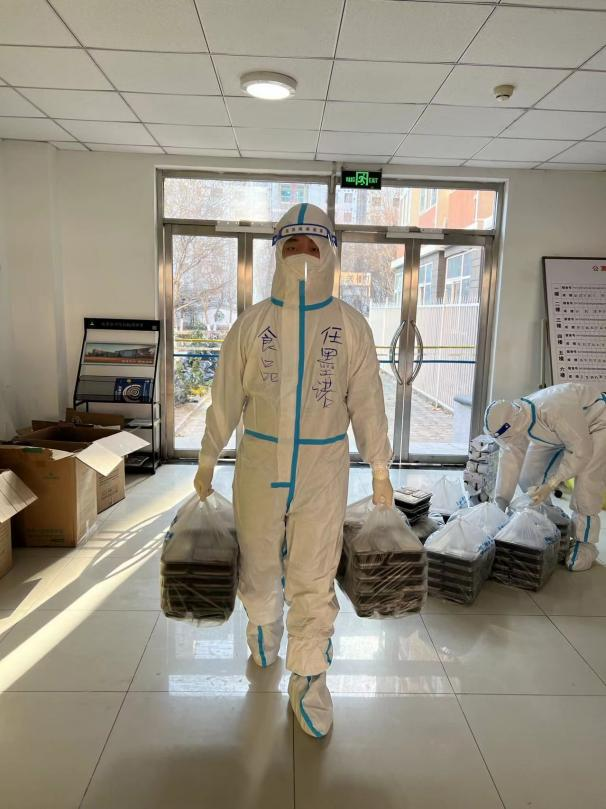 党总支副书记、副院长王雪,团委书记罗蕊在深夜接到校园出现疫情的通知后,放下各自家里的两个孩子,没有丝毫犹豫,连夜收拾换洗衣物,隔天便入驻学生宿舍8号楼。“起床了,早餐来了”“开水打来了,5分钟后开门取,小心别烫着”“戴好N95,咱该测核酸了”“妈妈式”的碎碎念里饱含她们对学生最深的爱。为保证学生们能吃上热乎的三餐,她们每天上上下下无数趟,十几公斤的水,咬牙扛着爬楼梯......