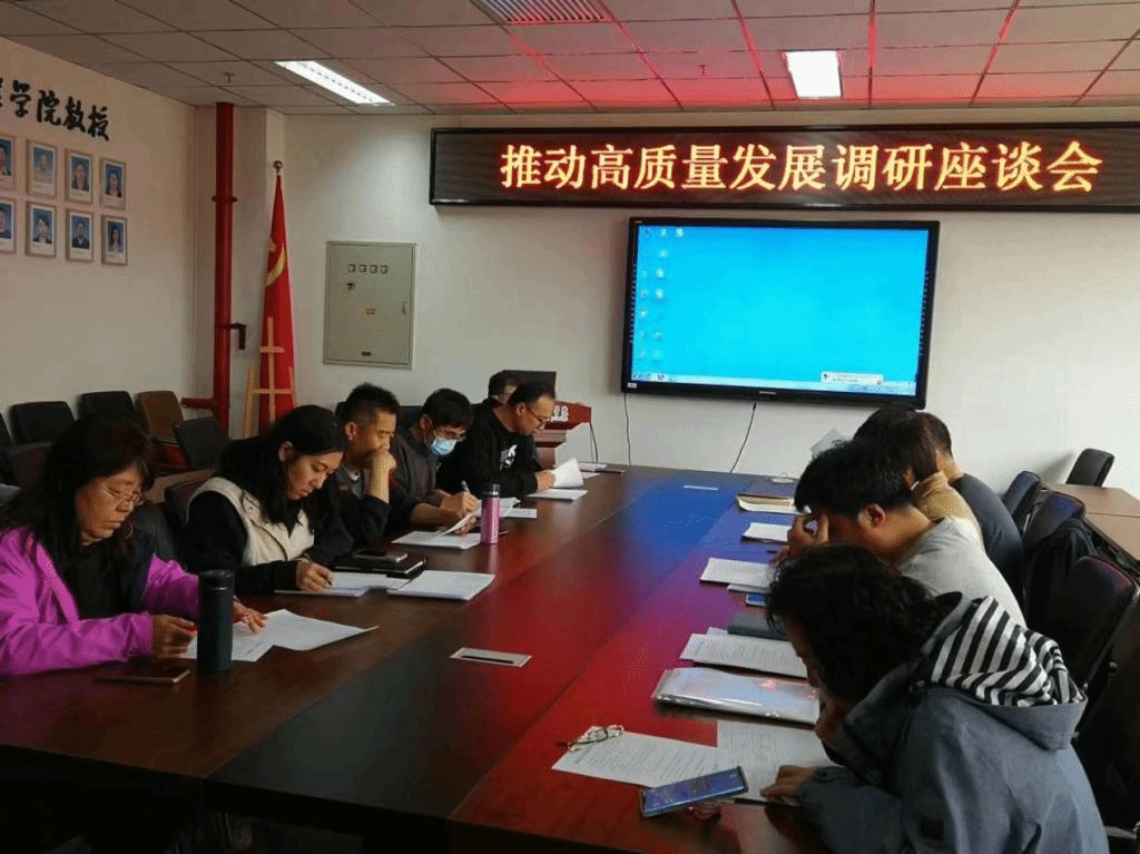 各系召开推动高质量发展调研座谈会。会议由党总支书记靳晓熙主持,全体班子成员参加会议。