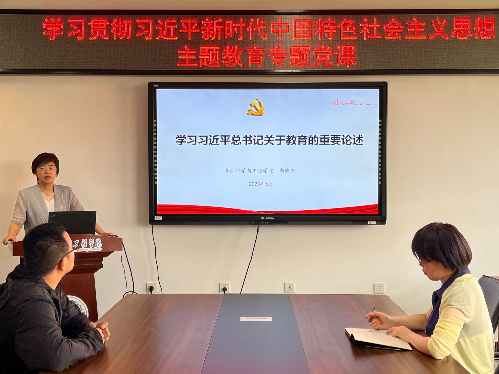 全体教师参加党课。