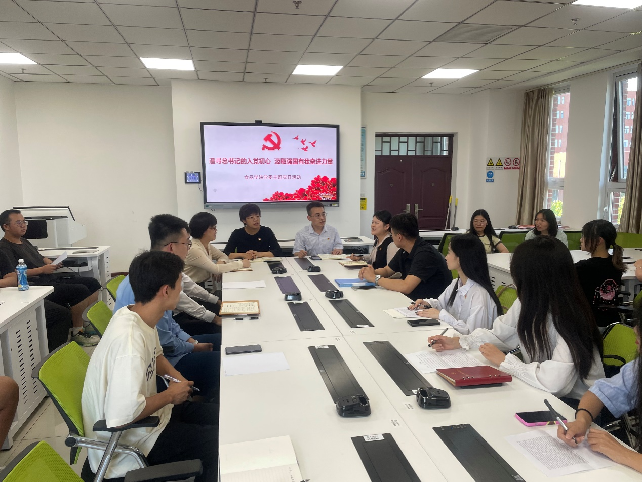 党委书记靳晓熙,党委副书记、副院长王雪,党员代表和大一入党积极分子参加活动。主题党日活动由酿酒工程本科生党支部书记魏晓峰主持。