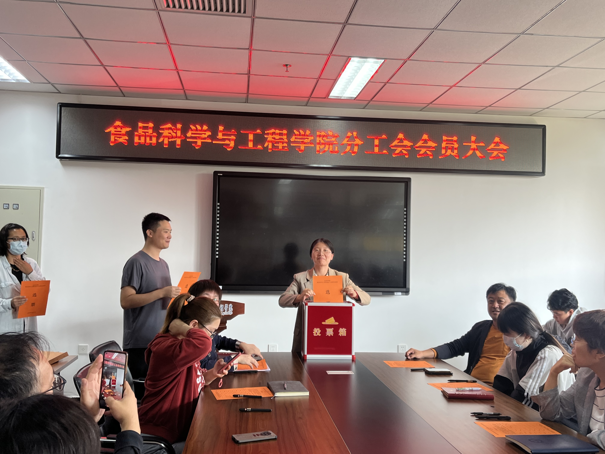 分工会在食品楼218召开会员大会。全体会员参会,会议由分工会主席王雪主持。