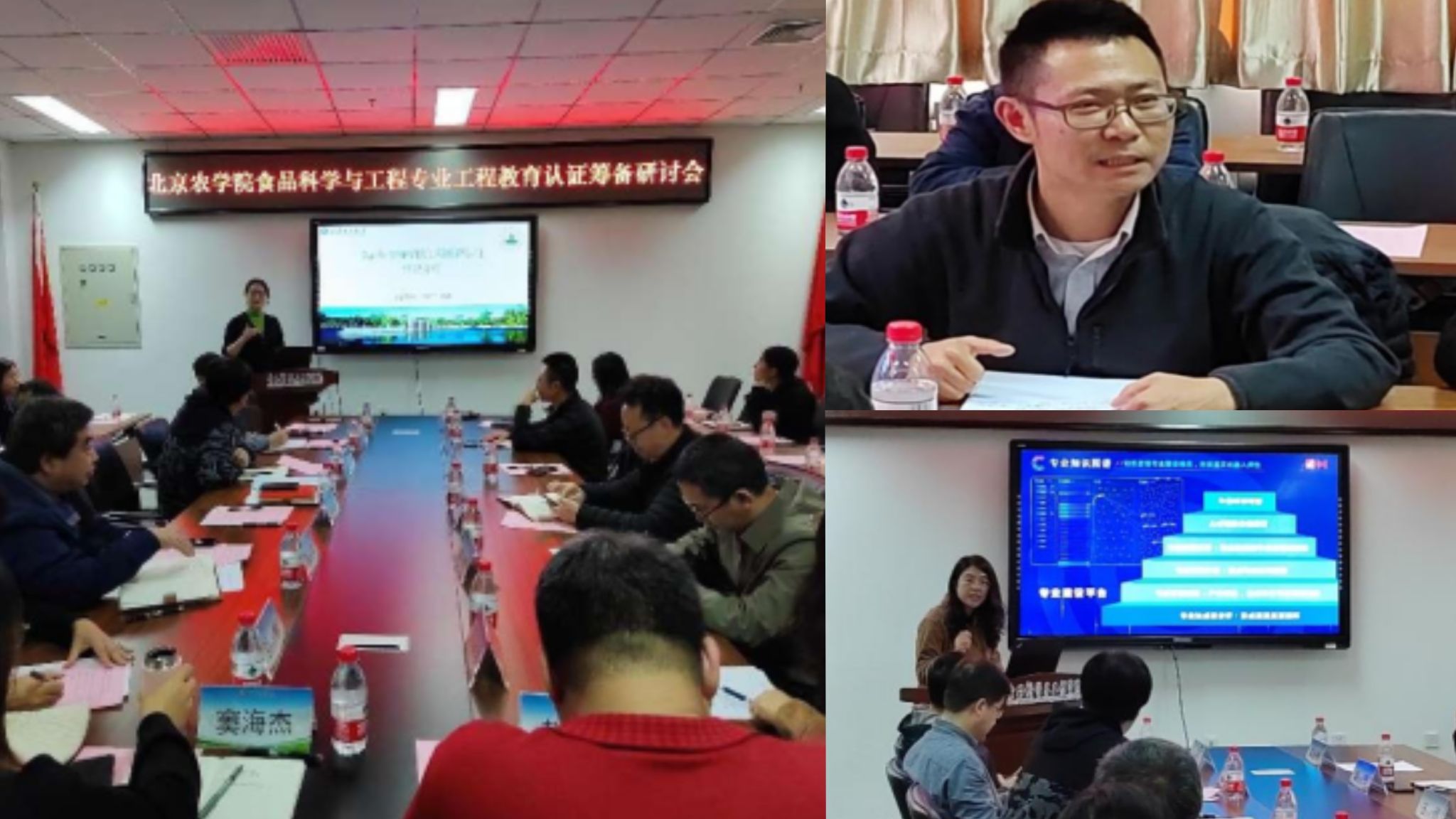 工程教育认证的准备工作和组织工作情况;赵亮教授详细介绍了中国农业大学工程教育认证的准备和实施经验;刘宏玮介绍了基于专业知识图谱的工程教育认证教学质量保障体系建设。汇报结束之后,所有参会人员就开展工程教育认证筹备工作进行了热烈的研讨。