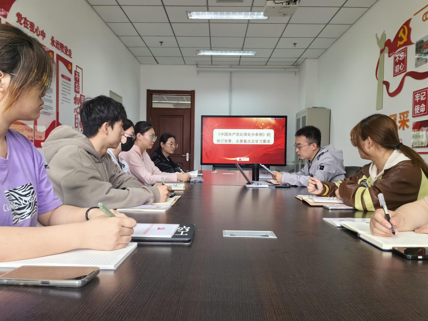 本科生党支部书记魏晓峰、赵静,研究生党支部书记杨丰瑞、官凌霄分别为学生党员解读了《条例》的修订背景、重要意义、修订亮点等内容,并结合“学习纪律强化月”活动,引导学生将“学习是学生的第一要务”观念内化于心、外化于行,充分发挥学生党员在学风建设中的“红色头雁”作用。