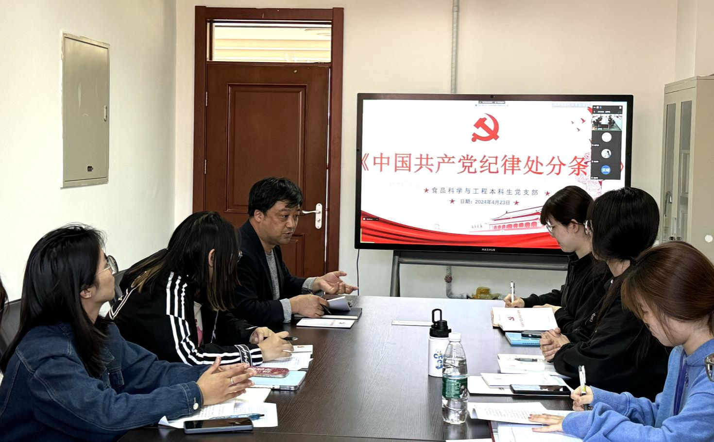 食品科学与工程教师党支部书记孙运金向支部党员传达了学校党纪学习教育工作部署会精神,并部署支部党纪学习教育。他指出,支部全体党员要坚持主动认真学、原原本本学、结合实际学,不断深入领会《条例》的精神实质和具体要求,提升师德素养和专业能力。