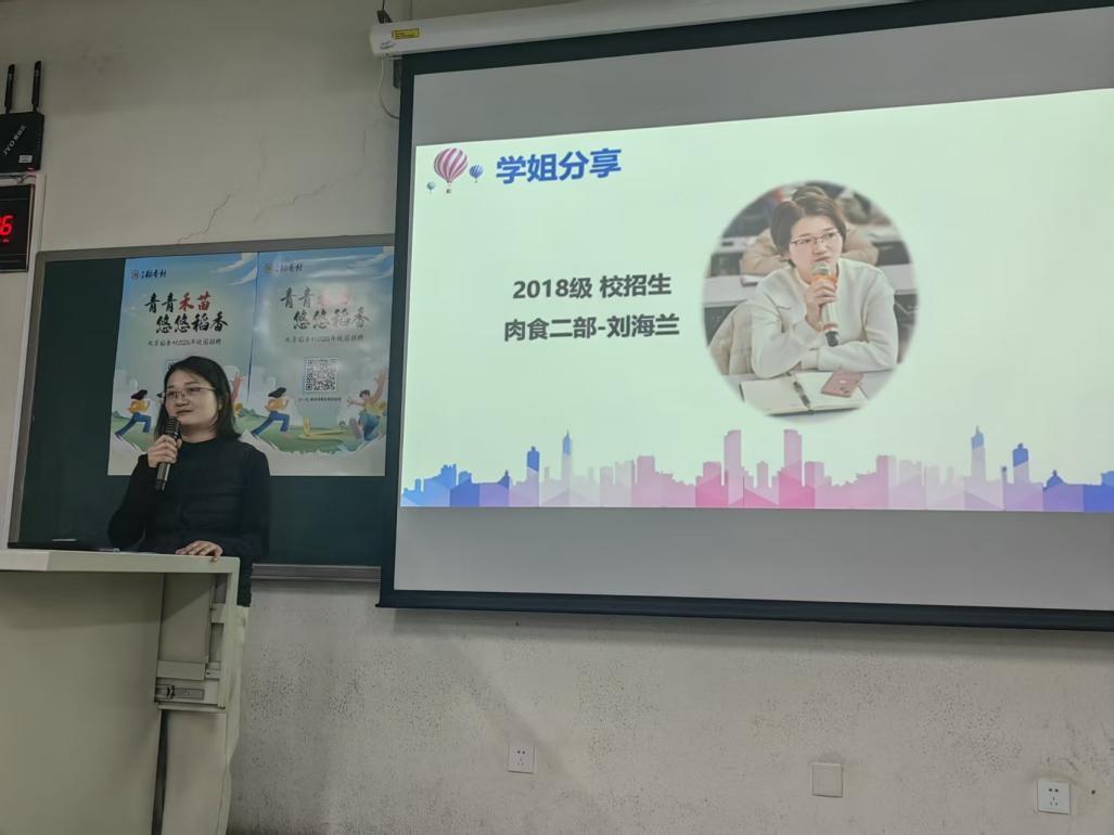 宣讲环节,公司市场人力资源部经理赵晶晶生动讲解了稻香村百年老店的品牌积淀。从匠心传承的企业理念,到守正创新的发展路径,再到具体岗位招聘需求,全方位进行了宣讲。会上,2018级管培生刘海兰分享了自己的成长经历,如何从职场新手一步步成为业务骨干,在轮岗历练与实战挑战中完成了自我蜕变。