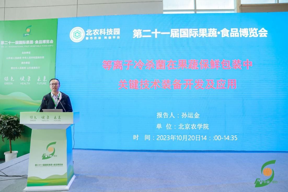 博览会期间,以“技术升级助力烟台特色果蔬产业新发展”为主题的2023烟台特色果蔬产业技术交流会顺利举办。会上,孙运金应邀以“等离子冷杀菌在果蔬保鲜包装中关键技术装备开发及应用”为题作主题报告。报告围绕研发团队,等离子体的基本概览、发展历程、核心技术及成果等方面,介绍了等离子冷杀菌在果蔬保鲜包装中关键技术装备开发及应用,展示了帕斯曼超离子技术在药材、物流、果蔬保鲜、农残降解产业技术领域的创新思路与研究成果。